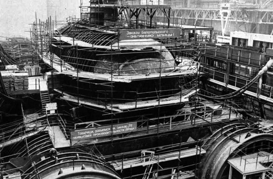 圖為建造中的“臺風”級頂層耐壓殼體。圖片來源:人民網