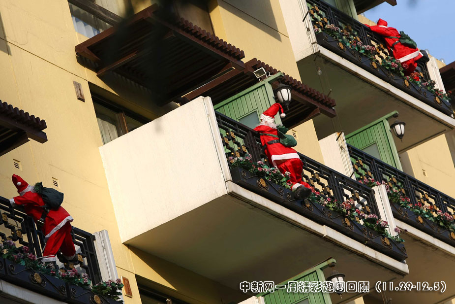 近日,隨著圣誕節即將到來,北京圣誕氛圍越來越濃厚。在北京某飯店,有許多圣誕老人爬上客房的陽臺準備送禮物了。中新社發 富田 攝 圖片來源:中國新聞網>>點擊觀看詳細內容