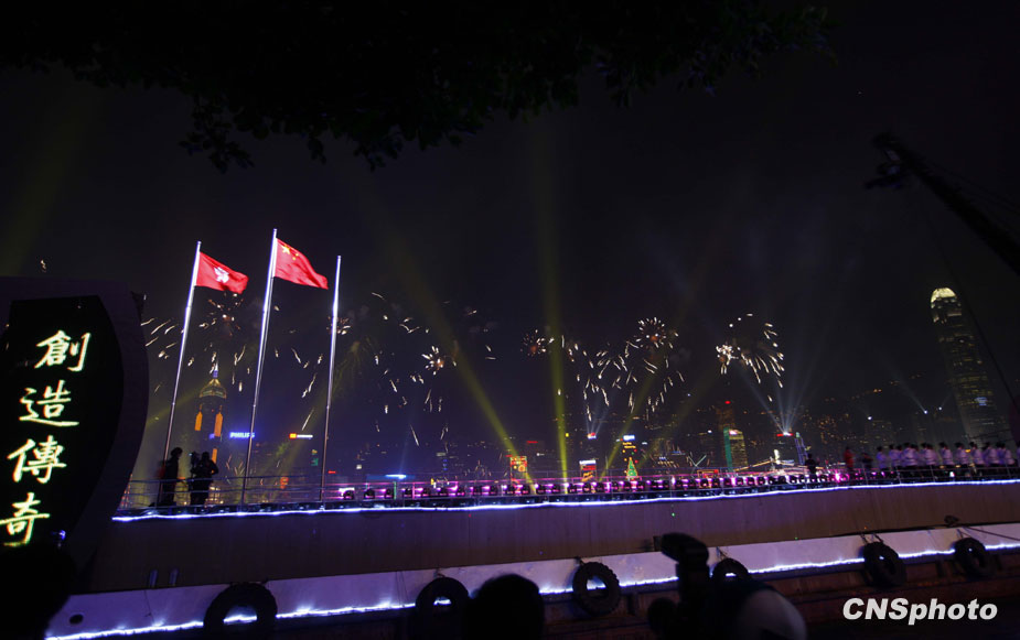 12月5日晚,第5屆東亞運動會開幕式在香港維多利亞港舉行,同時配以花船巡游、燈光效果和煙花匯演,成為一屆富有特色的水上開幕式。中新社發 盛佳鵬 攝