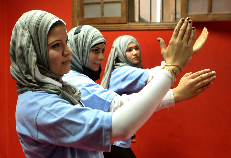 近日,埃及“女子警衛”在開羅郊區一個體育館進行訓練。她們專為有一定社會地位和名氣的女性提供服務。圖片來源:中國新聞網