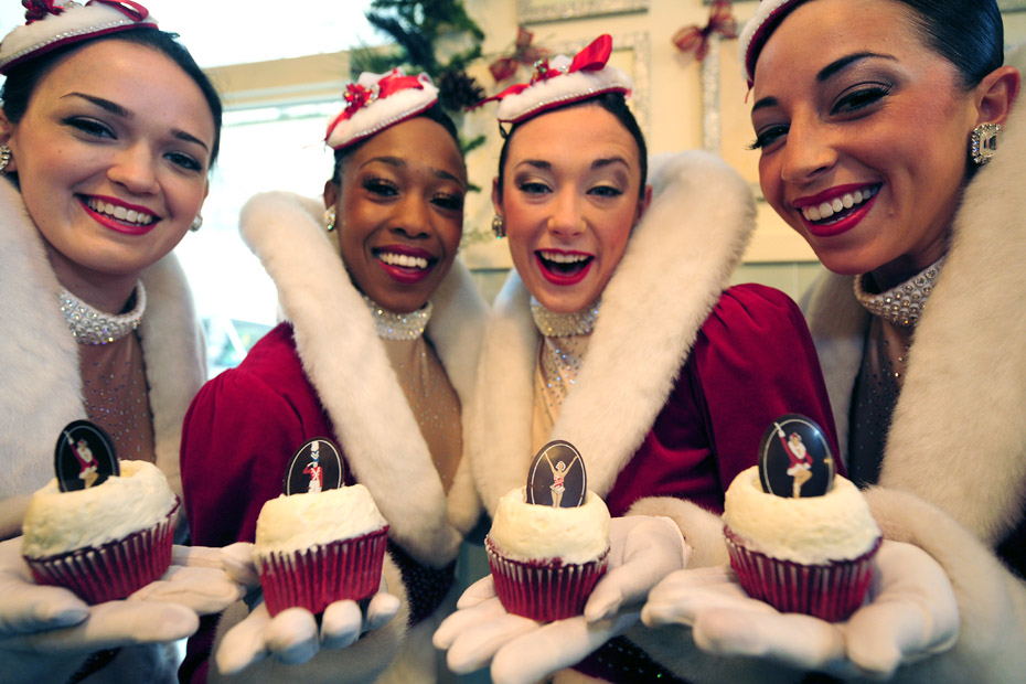 12月8日,美國紐約洛克茨無線電城“火箭女郎”舞蹈團(tuán)的隊(duì)員們近日與蛋糕店聯(lián)合推出演出套票,買蛋糕的觀眾可以以更優(yōu)惠的價(jià)格購得演出票。圖片來源:中國新聞網(wǎng)