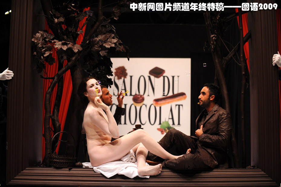 10月13日,第15屆法國(guó)巴黎巧克力展開(kāi)幕,眾多明星身著巧克力服飾亮相。