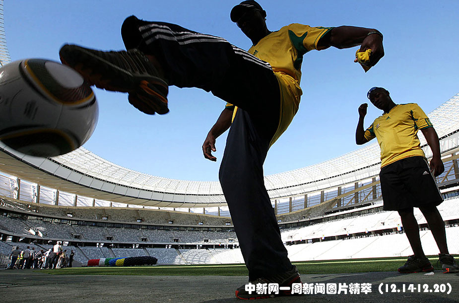 南非開普敦的新體育場竣工儀式在14日(周一)舉行,圖為球迷們在儀式上進行表演。該體育場是為明年南非足球世界杯而建,可容納6.8萬名觀眾。圖片來源:中國新聞網