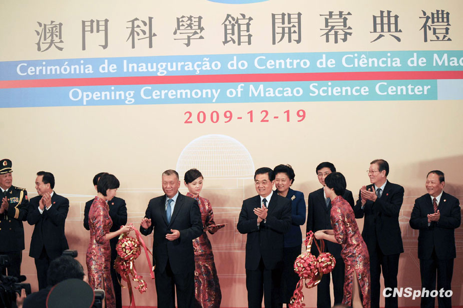 12月19日下午,國家主席胡錦濤與澳門特首何厚鏵等出席澳門科學館開幕典禮并剪彩。中新社發 廖攀 攝