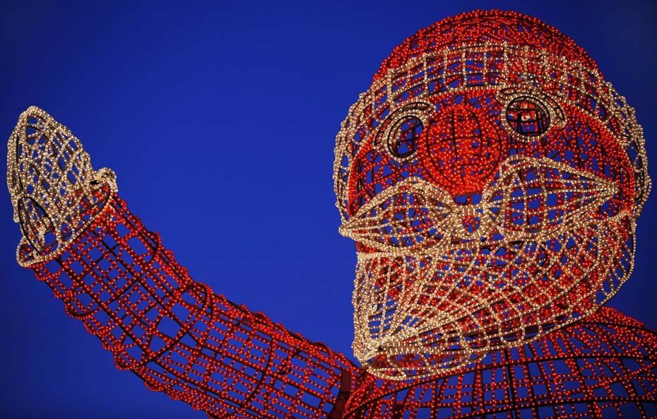圖為柏林閃閃發(fā)亮的巨型圣誕老人。