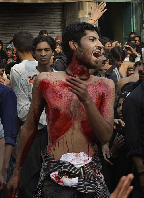 12月28日,印度穆斯林慶祝阿舒拉節。一些當地穆斯林在儀式上用鐵鞭抽打自己,以此慶祝節日。圖片來源:中國新聞網