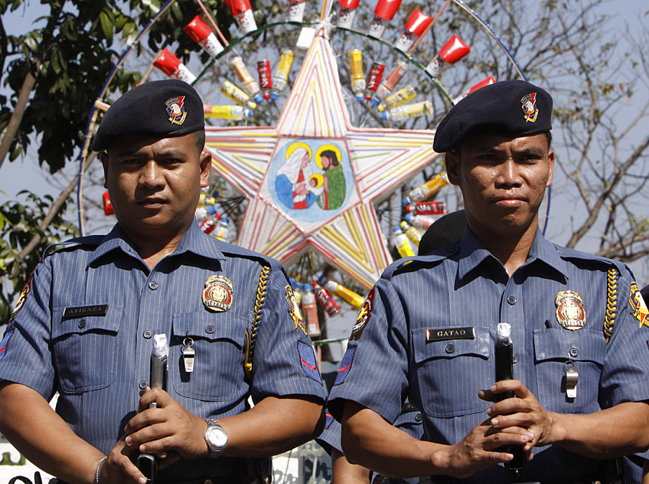 12月29日,菲律賓首都南部的塔吉格市警察部隊為了防止警務人員在慶祝新年時胡亂開槍,下令用膠紙把槍口封起來。圖片來源:中國新聞網(wǎng)