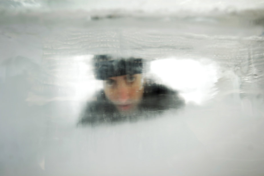 當(dāng)?shù)貢r間29日早上8點起,以色列魔術(shù)師赫齊·達揚在位于特拉維夫的拉賓廣場上,達揚赤身進入一塊8噸重的冰塊里,開始了挑戰(zhàn)冰屋生存世界紀錄之旅。圖片來源:中國新聞網(wǎng)