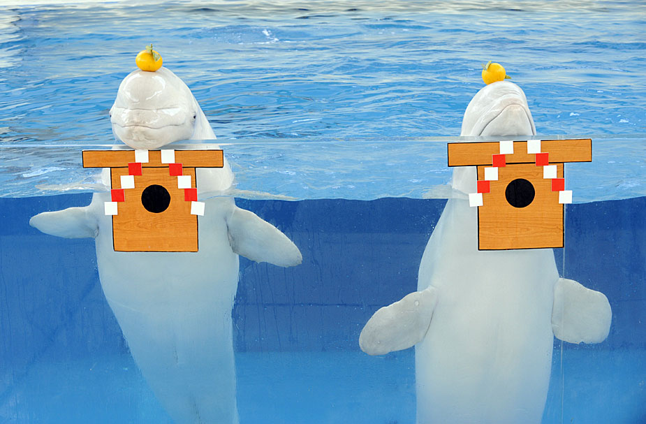 12月30日,日本神奈川八景島海洋樂園水族館內,海獅表演了用毛筆在紙上“寫”漢字的節目。圖片來源:中國新聞網