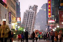 12月30日,隨著世博臨近世博園工地一片繁忙景象,夜間黃浦江畔世博各主場館進行燈光調試。