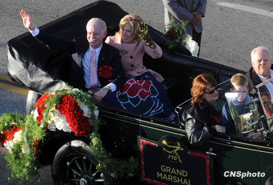美國當地時間1月1日,第121屆美國玫瑰花車大游行在加州帕薩迪納市隆重舉行。著名影星成龍助陣中國上海世博花車。圖片來源:中國新聞網
