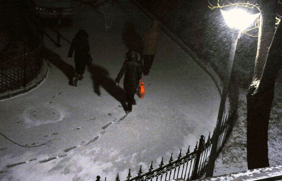1月3日子夜時分,北京開始降下新年第二場雪,風雪夜歸人踏出第一行腳印冒著嚴寒回家。賈國榮 攝
