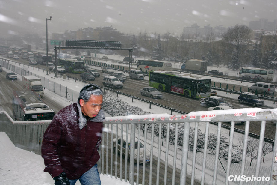 1月3日,北京城降下大雪,積雪深達6厘米,預計雪花會飄灑一整天。天氣預報稱,北京地區的氣溫有可能達到-16℃,從而逼近40年來的歷史低溫極值。圖片來源:中國新聞網