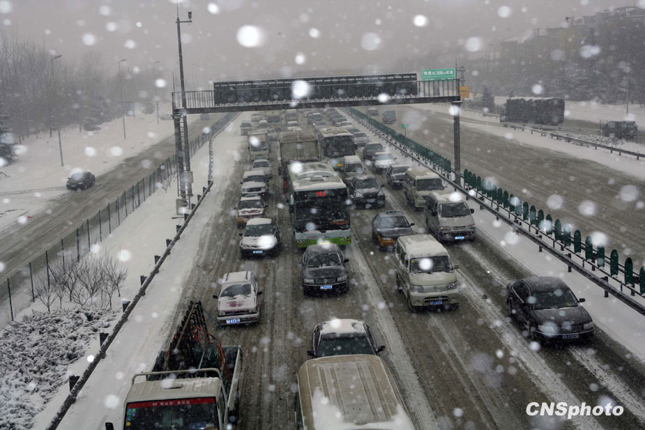 1月3日,北京城內大雪紛飛,積雪厚度為近年少有,交通受到很大影響。天氣預報稱,北京地區的氣溫有可能達到-16℃,從而逼近40年來的歷史低溫極值。中新社發 劉震 攝