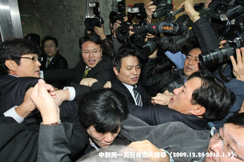 周四(31日),韓國大國家黨當(dāng)日決定在國會245室進行預(yù)決委審議之后,民主黨議員趕往現(xiàn)場,與大國家黨議員發(fā)生了肢體沖突。圖片來源:中國新聞網(wǎng)