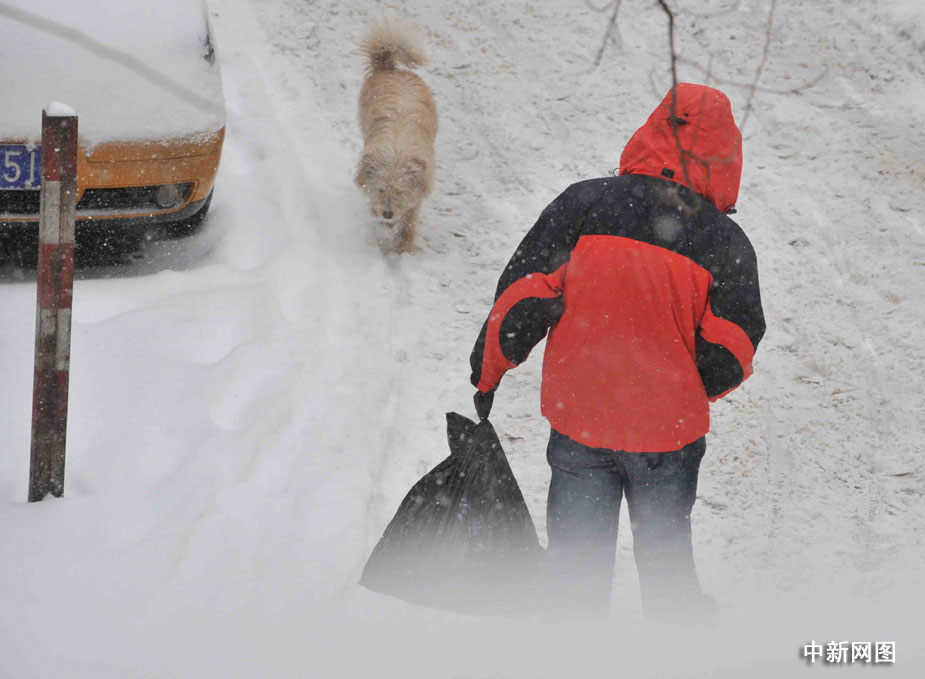 1月3日,貝加爾湖東移南下強冷空氣裹挾大雪鋪天蓋地席卷北京。雪厚路滑加上大幅降溫,給交通和市民出行帶來嚴重影響。圖片來源:中國新聞網