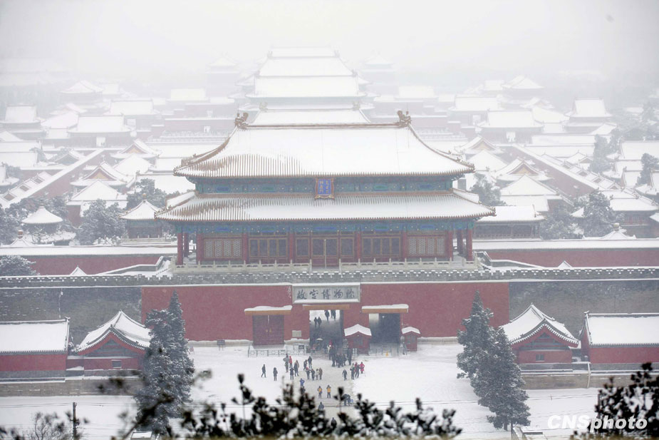1月3日,北京普降大雪,紛飛瑞雪把北京故宮打扮得銀裝素裹。中新社發 杜洋 攝