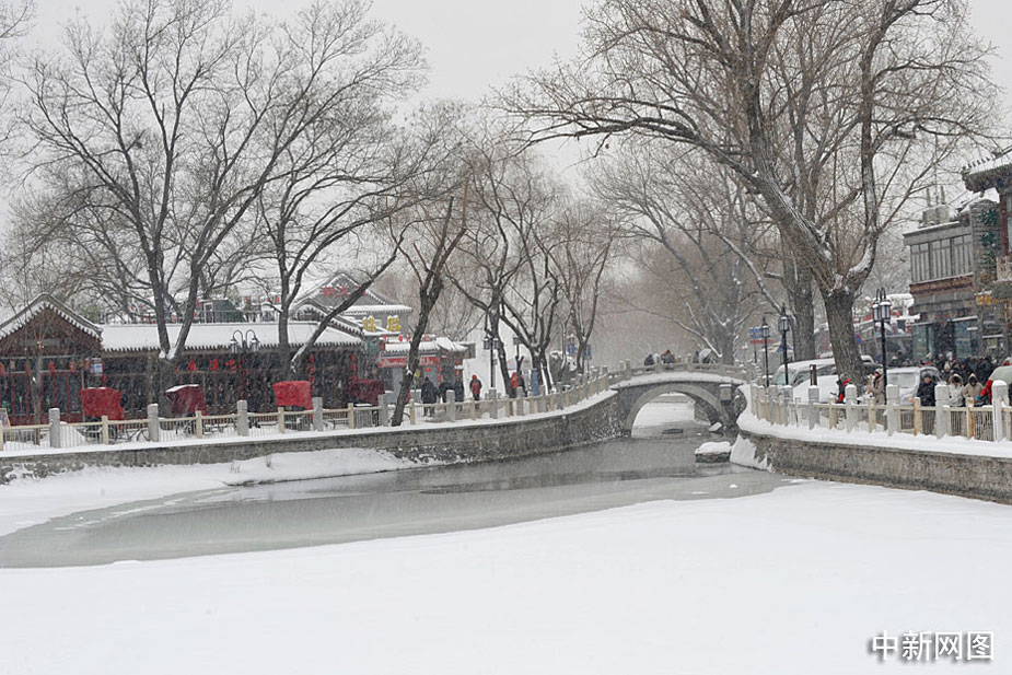 1月3日,北京后海地區的銀錠橋雪景如畫。中新網記者 金碩 攝