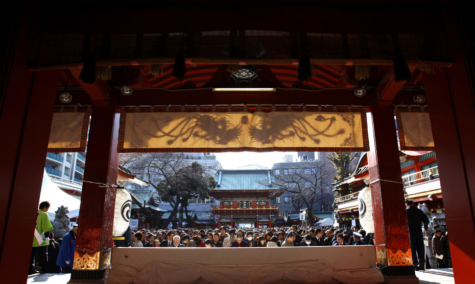 2010年1月4日,日本東京,商人聚集在神田神社里祈福,希望在新的一年里生意興隆。當天是日本股市2010年首個交易日,市場升勢延續。圖片來源:中國新聞網