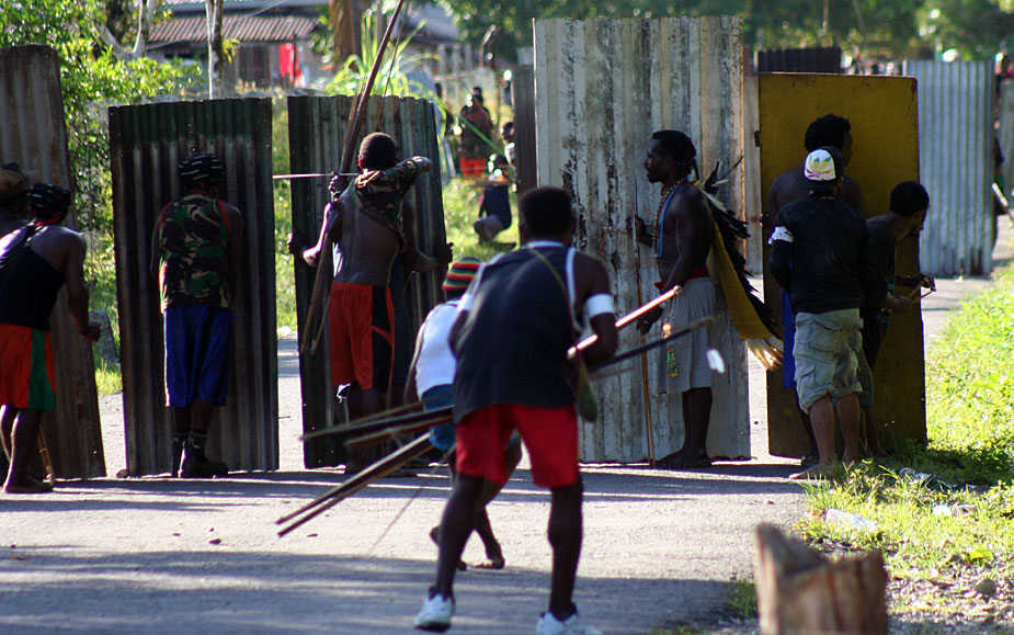 1月6日,印尼巴布省的兩個村落因債務問題引發了武裝爭斗,雙方手持弓箭等原始武器進行了一場原始的戰爭。目前,這場沖突已經造成多人傷亡。圖片來源:中國新聞網