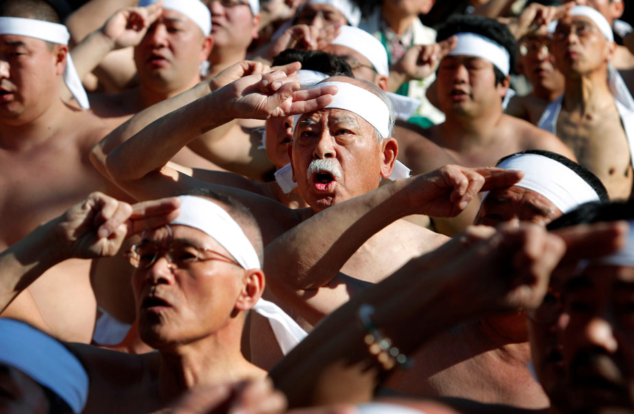 2010年1月10日,日本東京,眾多健身愛好者一同在冷水中浸泡,祈禱自己在新一年身體健康,并展示自己的體魄。