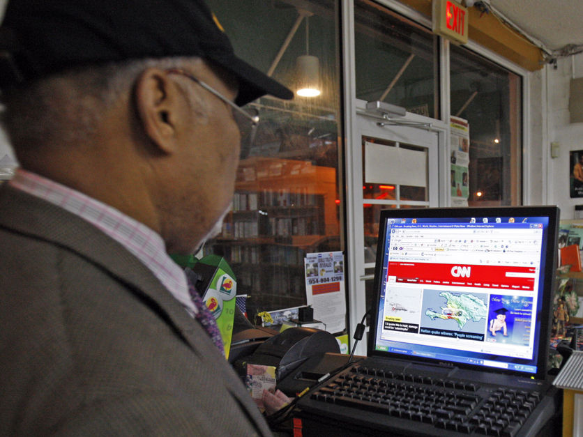 當地時間12日下午,海地發生7.0級強烈地震,多座建筑損毀。在美國邁阿密,一位民眾通過網絡查看海地大地震的消息。