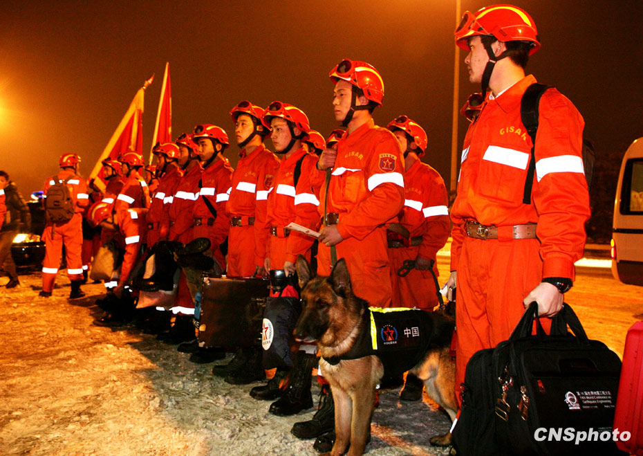 1月13日晚,中國國際救援隊從首都國際機場搭乘飛赴海地執(zhí)行救援任務(wù)。據(jù)悉,救援隊一行共計68人,由三個分隊組成,包括來自國家地震局的10人專家分隊等。據(jù)了解,救援隊隨機攜帶了總價值約1200萬元人民幣的10余噸救災(zāi)物資,其中包括救援、通訊、后勤保障、醫(yī)療、食品在內(nèi)等物資設(shè)備和三只搜救犬。中新社發(fā) 雷虹 攝