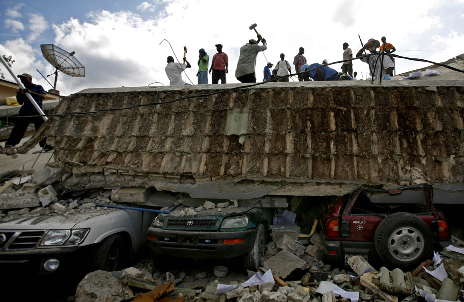 在突如其來強(qiáng)震過后,海地首都太子港變得一片狼藉。總統(tǒng)府、教堂、醫(yī)院、學(xué)校、監(jiān)獄和所有社區(qū)被嚴(yán)重?fù)p毀。遭遇近二百年最強(qiáng)地震的海地13日仍無法統(tǒng)計(jì)地震人員傷亡情況,而該國(guó)官方預(yù)計(jì)遇難人數(shù)可能超過十萬人。圖片來源:中國(guó)新聞網(wǎng)