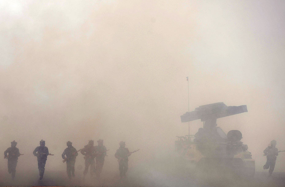 圖為印度陸軍在建軍節表演實戰技能。
