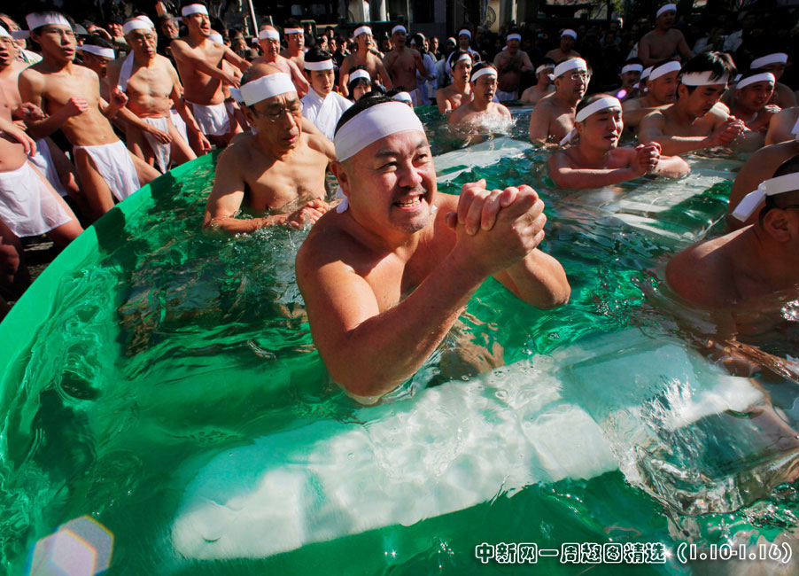 2010年1月10日,日本東京,眾多健身愛好者一同在冷水中浸泡,祈禱自己在新一年身體健康,并展示自己的體魄。圖片來源:中國新聞網(wǎng)>>點(diǎn)擊觀看詳細(xì)內(nèi)容