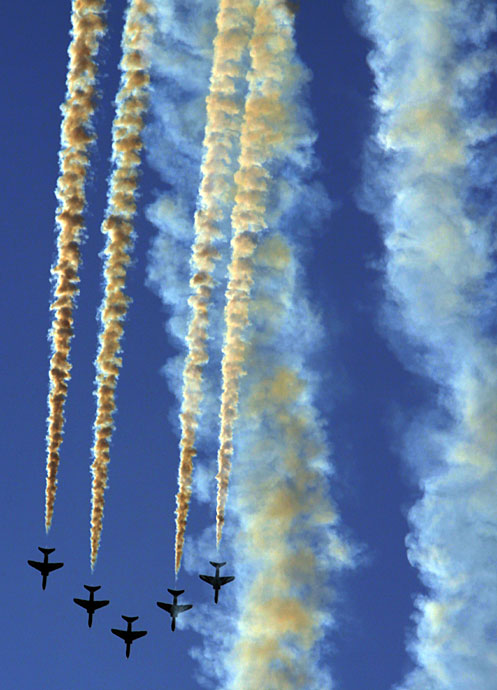 1月21日,巴林國際航空展在毗鄰巴林F1賽場的SAKHIR空軍基地開幕。在開幕式上,飛行表演隊舉行了異彩紛呈的飛行表演。圖片來源:中國新聞網
