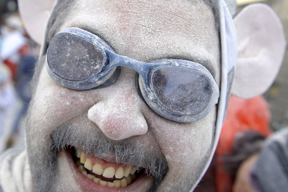 1月24日,西班牙西北部的一座村莊舉辦的狂歡節中上演瘋狂的“面粉大戰”。圖片來源:中國新聞網