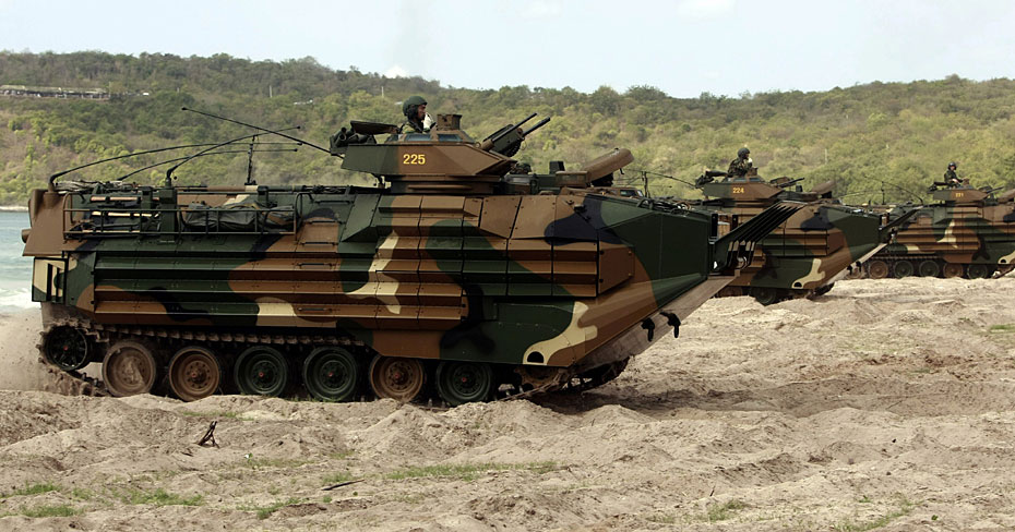 2月4日,參加“金色眼鏡蛇”聯合軍演的各國軍隊,在泰國的Rayong省沙灘進行了兩棲登陸演練。本次聯合軍演共有來自泰國、美國、印度尼西亞、新加坡、日本、韓國的約1.4萬名軍人參加。圖片來源:中國新聞網