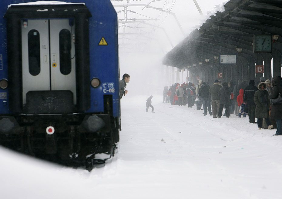 暴風雪近日突襲羅馬尼亞布東南部地區,造成該國多條公路關閉,列車晚點或臨時取消。處于橙色警報地區的布加勒斯特及其周邊9個縣的所有學校停課。圖片來源:中國新聞網