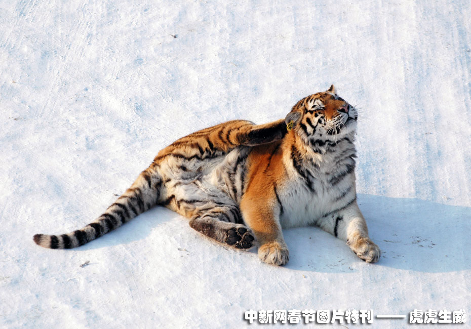 1月13日,黑龍江東北虎林園,老虎在雪地中嬉戲追逐。(王少華 張書儉 攝) 圖片來源:中國新聞網
