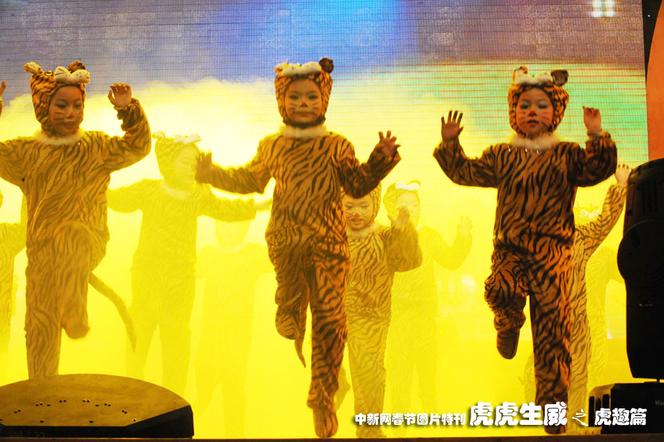1月26日,在安徽省亳州供電公司舉辦的《和諧快樂》春節聯歡會上,來自舞蹈學校的小朋友表演的舞蹈“虎娃迎春”,受到觀眾的歡迎。中新社發 張延林 攝