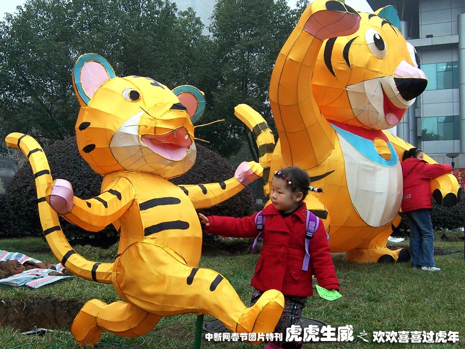 2月7日,10座“卡通虎燈”亮相江蘇省南京市街頭,為即將到來的新春佳節增添了喜氣。這批“卡通虎燈”由江蘇省揚州市民間藝人制作,造型各異,憨態可掬,吸引了眾多小朋友的喜愛。中新社發 安東 攝