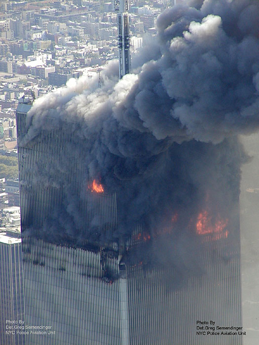 美國紐約警方2月10日公布了2001年“9.11”恐怖襲擊事件發生時的航拍照片。這些極具震撼力的照片讓讀者有機會從空中目擊世界貿易中心倒塌的一幕。圖片來源:中國新聞網