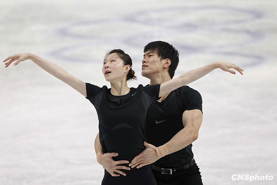 當地時間2月13日,中國花樣滑冰隊龐清/佟健、張丹/張昊在溫哥華太平洋體育館,利用最后的休息時間重復練習積極備戰即將到來的比賽。中新社記者 盛佳鵬 攝