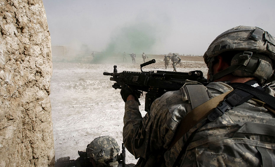 以美國為主的北約與阿富汗盟軍對阿南部城市馬爾賈的清剿活動14日進入了第二天。隨著巷戰展開,交火愈加頻繁和激烈。圖片來源:中國新聞網