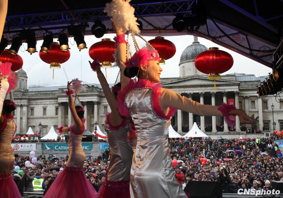 當(dāng)?shù)貢r間2月21日下午,由國務(wù)院僑辦組派的“文化中國·四海同春”藝術(shù)團(tuán),亮相亞洲之外最大規(guī)模的春節(jié)慶祝活動——倫敦春節(jié)慶典,藝術(shù)團(tuán)高水準(zhǔn)的演出,受到數(shù)萬觀眾的熱烈歡迎,成為當(dāng)日多項慶典活動中最受矚目的節(jié)目。中新社發(fā) 魏晞 攝