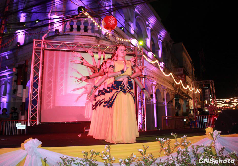 泰國普吉島20日舉辦為期三天的大型活動慶祝中國春節(jié)。普吉中學孔子課堂應邀參加了本次慶祝活動,包括舉辦中華飲食、中國文化工藝品、以及漢語教材為內容的展覽。圖為慶祝活動中當?shù)貙W生表演的千手觀音舞蹈。 中新社發(fā) 顧時宏 攝