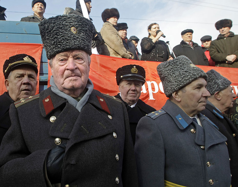 2月23日,俄羅斯莫斯科,示威者參加俄羅斯共產(chǎn)黨組織的集會,抗議軍隊改革。圖片來源:中國新聞網(wǎng)
