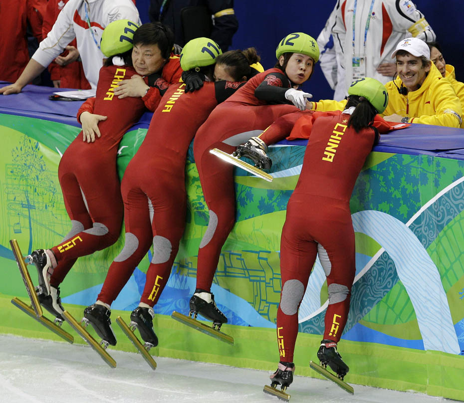當地時間2月24日,溫哥華冬奧會女子短道速滑3000米接力A組決賽中,中國隊王濛、周洋、孫琳琳、張會四朵金花聯袂出擊,最終將金牌歸入中國隊囊中。這也是本屆冬奧會中國隊奪得的第四枚金牌。圖片來源:中國新聞網