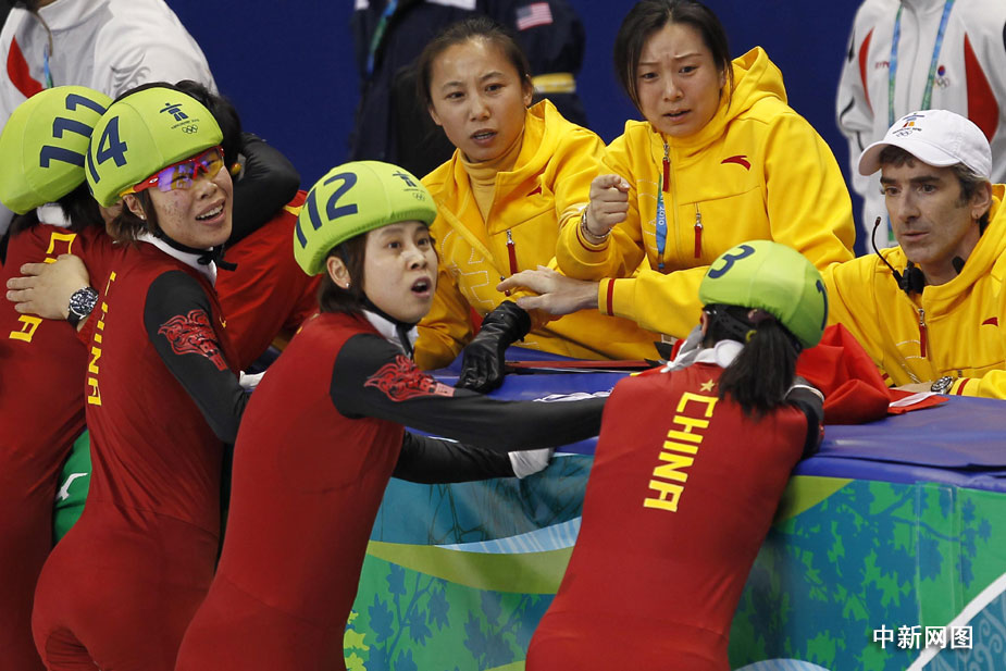 中國短道速滑隊25日在溫哥華冬奧會上奪得女子接力金牌,實現了歷史性突破。中新社記者盛佳鵬 攝
