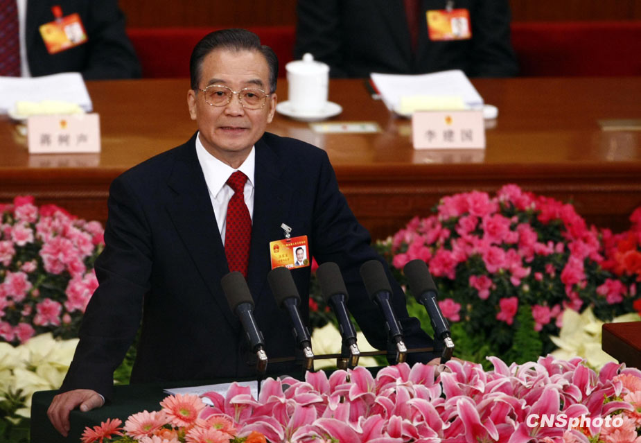 3月5日上午9時,十一屆全國人大三次會議在北京隆重開幕。國務院總理溫家寶作政府工作報告。中新社發 杜洋 攝
