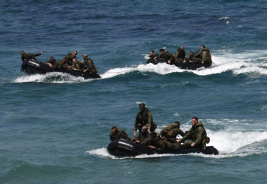 3月9日,美國與菲律賓在菲律賓甲米地省南部特爾納特海軍基地舉行聯合軍事演習。此次軍演雙方共出動了數百名作戰人員。圖片來源:中國新聞網