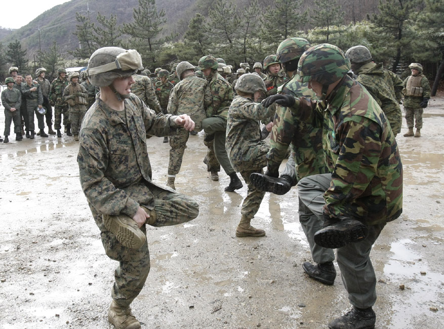 3月11日,在韓國鎮(zhèn)海海軍基地,韓美兩國的海軍陸戰(zhàn)隊舉行了聯(lián)合反恐軍事演習。