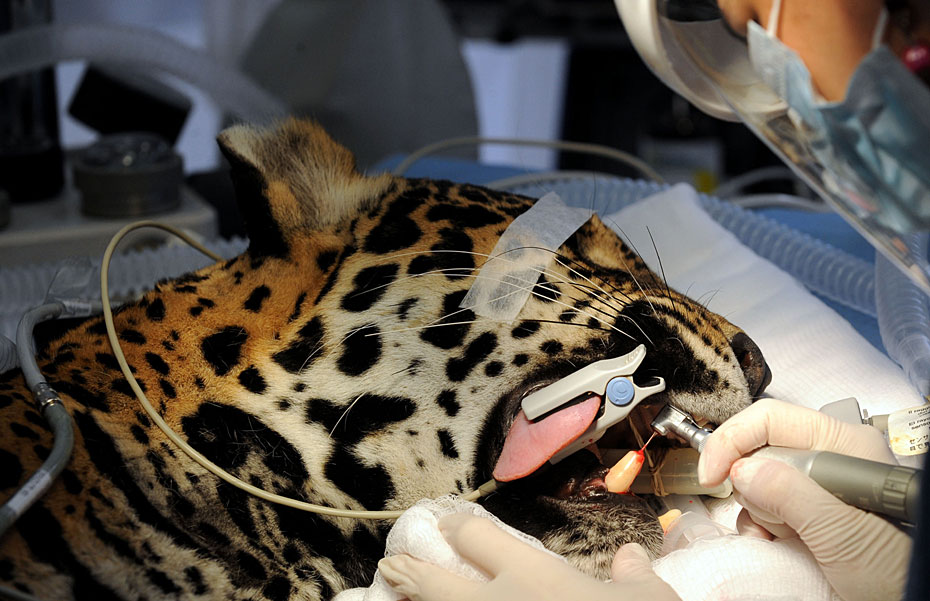 哥倫比亞獸醫為美洲虎實施牙齒手術
