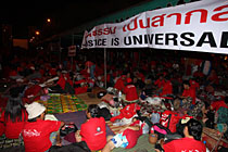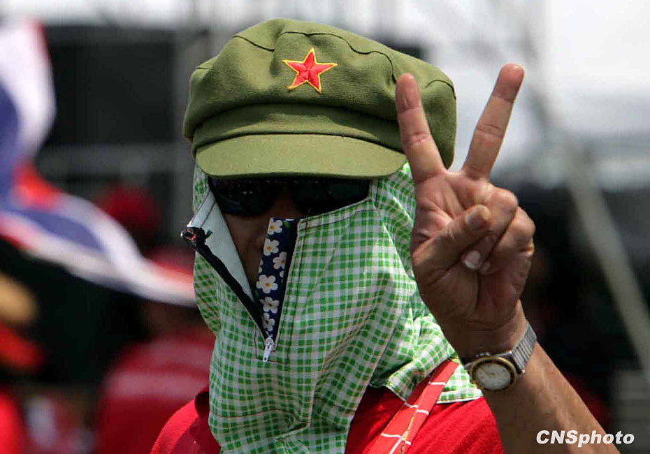 3月13日起,泰國“紅衫軍”陸續從泰國北部、東北部等外府進入曼谷市,在集會主會場搭設演講舞臺和帳篷,拉開大規模示威序幕。圖片來源:中國新聞網